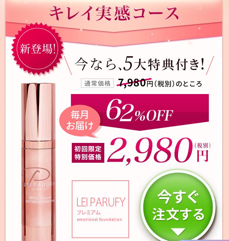LEI PARUFYプレミアムが購入できるのは、公式サイトのみです。公式サイトでは、初回が62%オフ、2回目以降の38%オフとかなりお得になります。