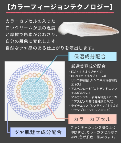自分の肌色に変化しながら、シミ・毛穴・くすみなどの肌悩みもしっかりカバーしてくれますよ。さらに、光を感謝させてツヤのある肌に仕上げます!