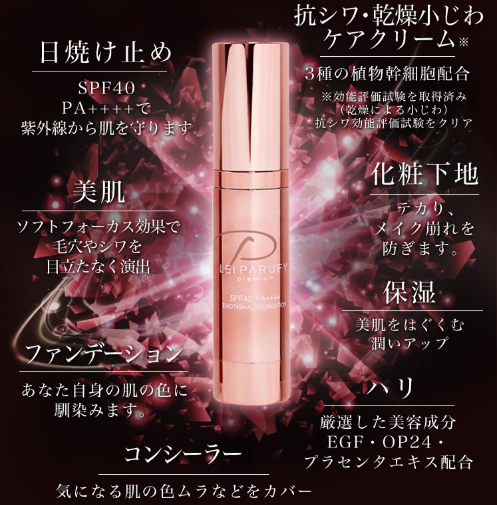 LEI PARUFYプレミアムはファンデーション選びに迷っている女性の救世主と言っても過言ではありません。自分の肌色に合わせて馴染むだけでなく、嬉しいプラスの効果がたくさんあります!